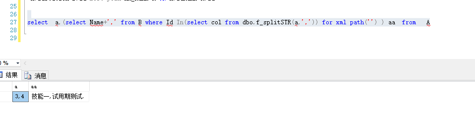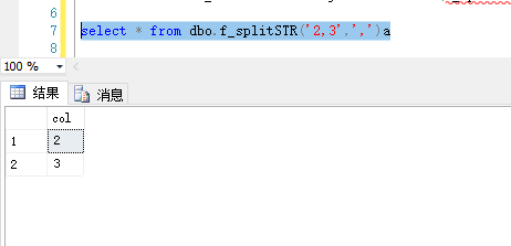 如果我们直接 select * from b where in(select a from A),查询会报从数据类型 nvarchar 转换为 bigint 时出错。很烦!so,我想我应该第一步解决将A表中的字段a切割一下。嗯.....所以我在网上找了有个sqlserver切割字符串的方法