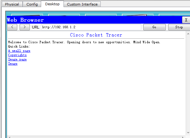 Router> Router>en Router#conf t Router(config)#hostname R2 R2(config)#int fa0/0 R2(config-if)#ip add 222.0.2.1 255.255.255.0 R2(config-if)#no shut R2(config-if)#exit R2(config)#int s2/0 R2(config-if)#ip add 222.0.1.2 255.255.255.0 R2(config-if)#no shut R2(config-if)#clock rate 64000 R2(config-if)# R2(config-if)# R2(config-if)# R2(config-if)#exit R2(config)#ip route 192.168.1.0 255.255.255.0 222.0.1.1 //R2到R1的静态路由 R2(config)#end R2# R2#show ip route S 192.168.1.0/24 [1/0] via 222.0.1.1 C 222.0.1.0/24 is directly connected, Serial2/0 C 222.0.2.0/24 is directly connected, FastEthernet0/0 R2# PC1: