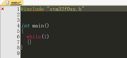 - 在main.c文件中添加芯片头文件与main函数并保存。