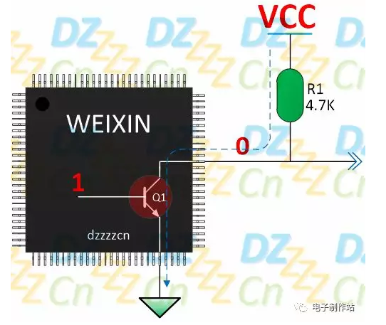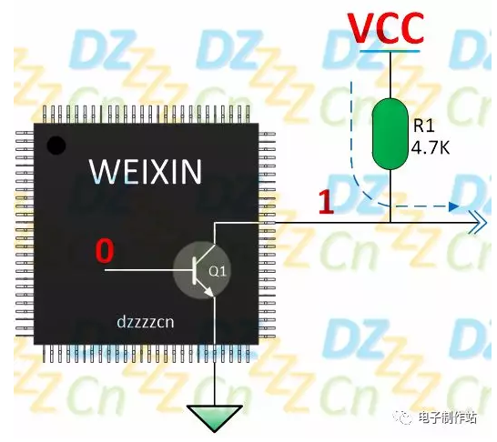 如果使用OC/OD输出结构,则相应的电路如下图所示: