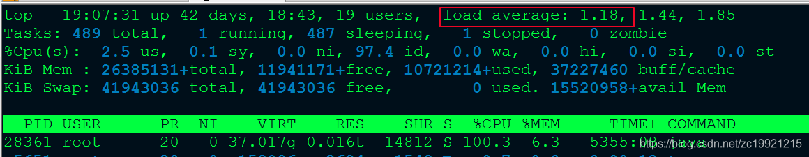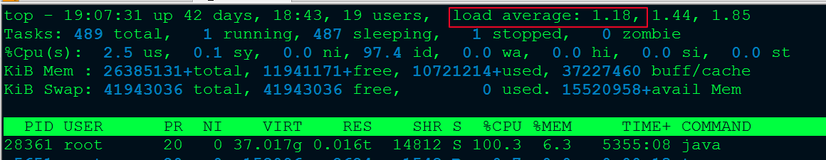 - top一下, load average不高,说明不是服务器负载太高了