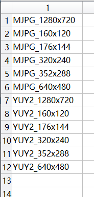 其中 SupportedFormats是该摄像头支持的图像色彩与尺寸,我的设备如下: