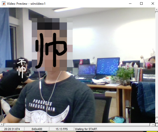 % 生成对象并同步画面 obj = videoinput('winvideo',1,'MJPG_640x480); h = preview(obj); 运行代码会弹出以下界面,实时画面