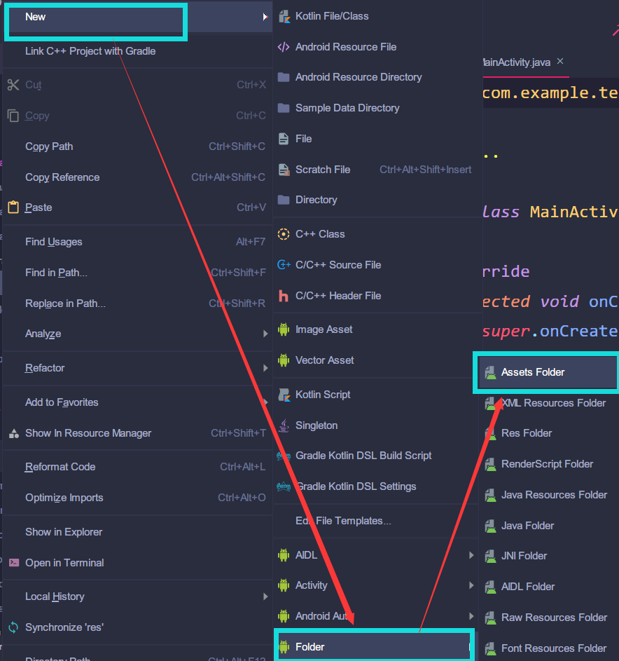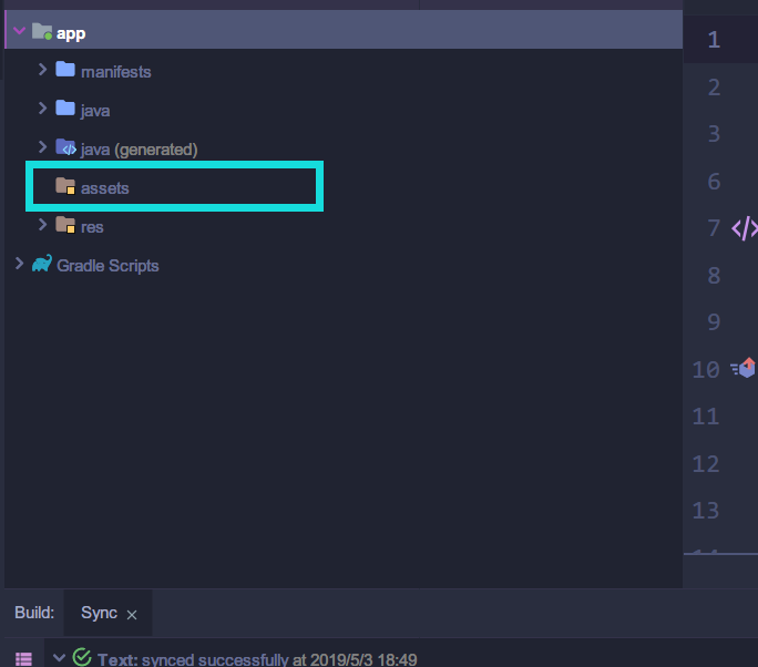 - (先查看Android Studio中的Assets中是否有建的文件夹和复制的文件)