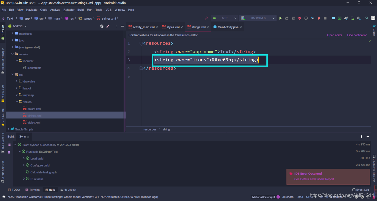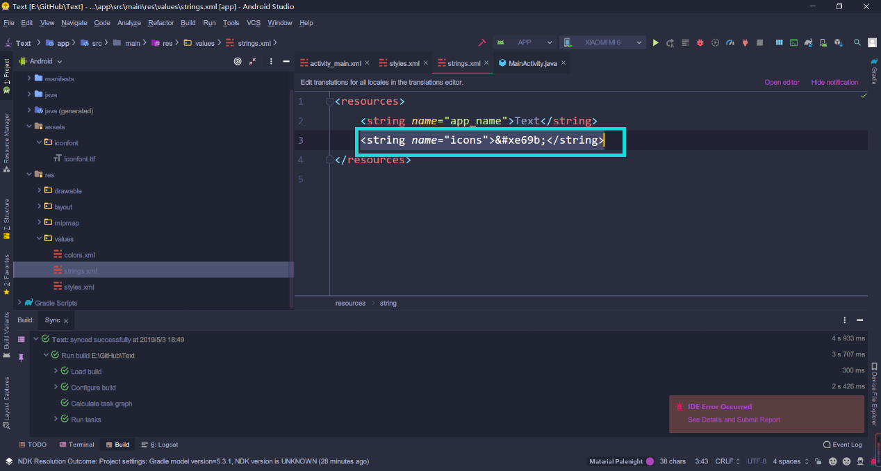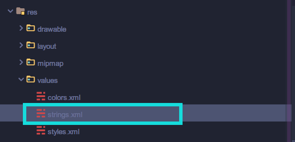第三步:打开 res/values/strings.xml,添加 string 值;