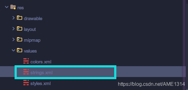 - 在res/values/strings.xml,添加 string 值: