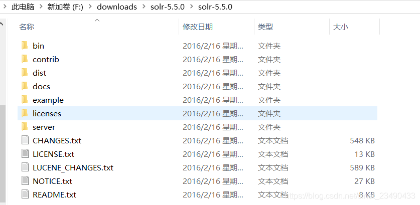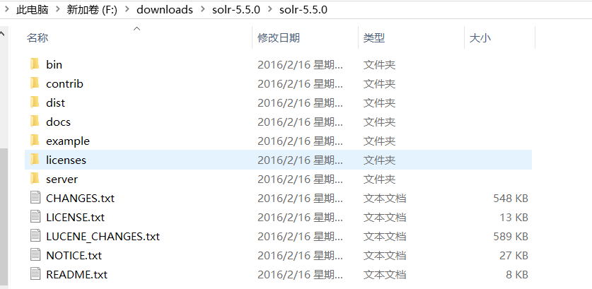 第一步、官网下载solr-5.5.0.zip,下载后解压,如下: