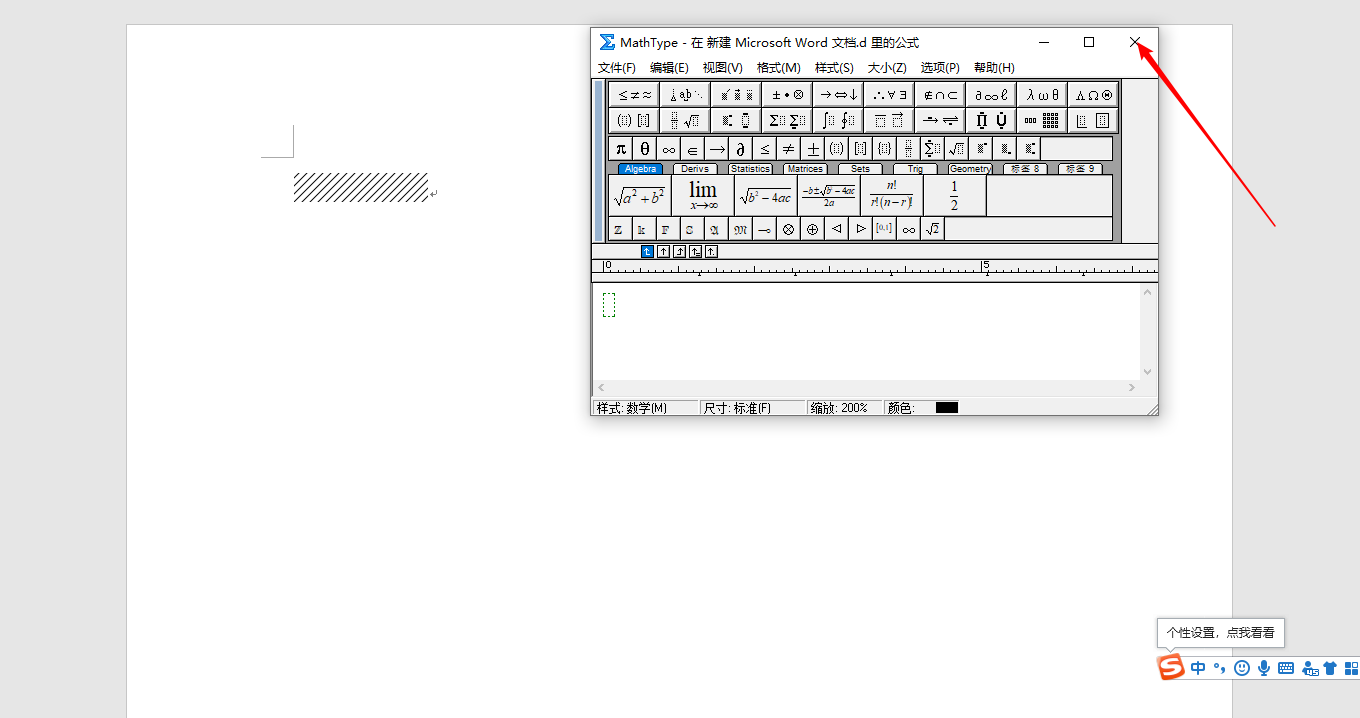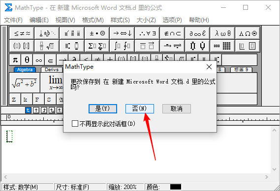 MathType 窗口,注意在弹出的窗口选择否