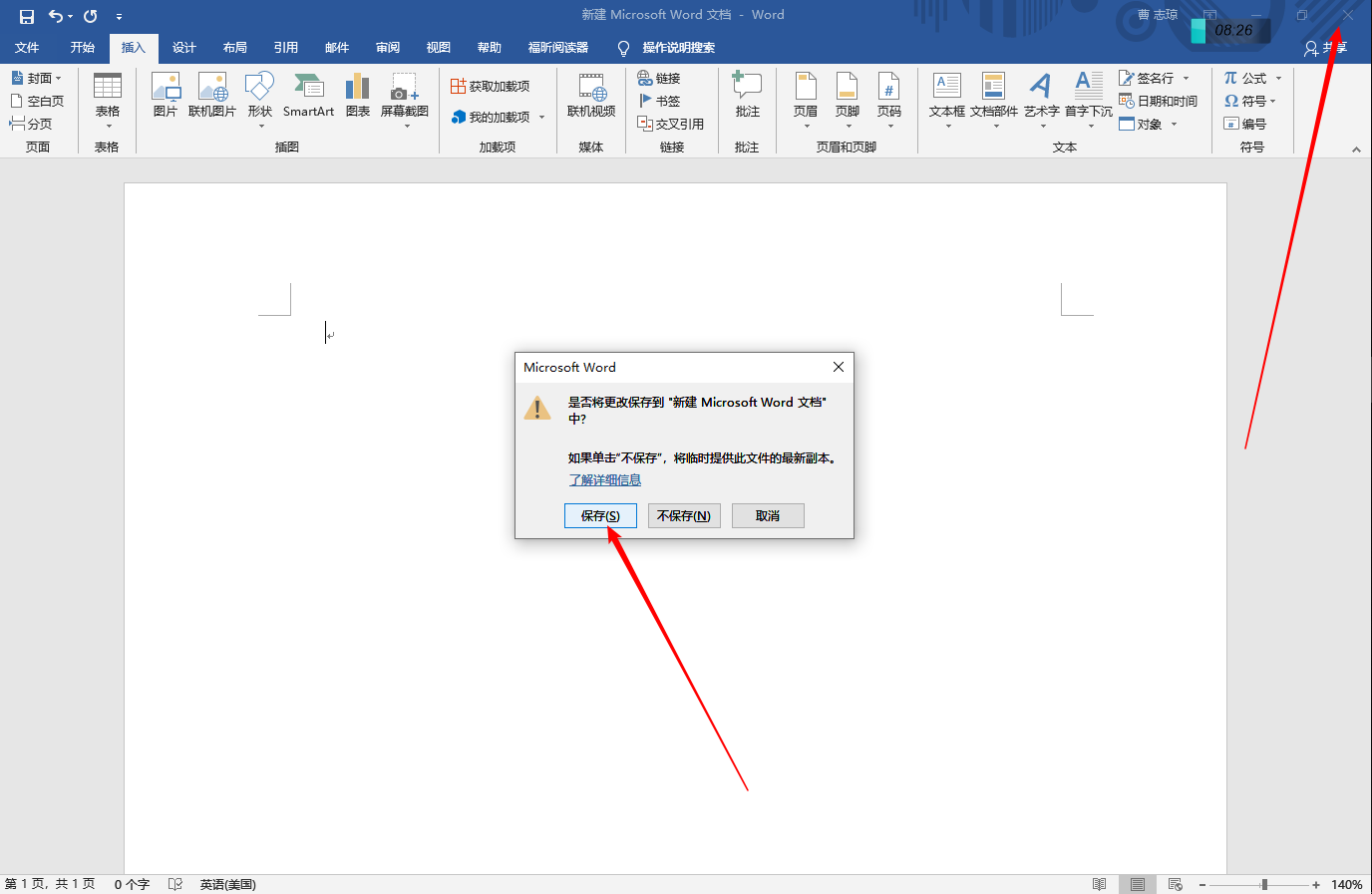 word,选择保存或者不保存