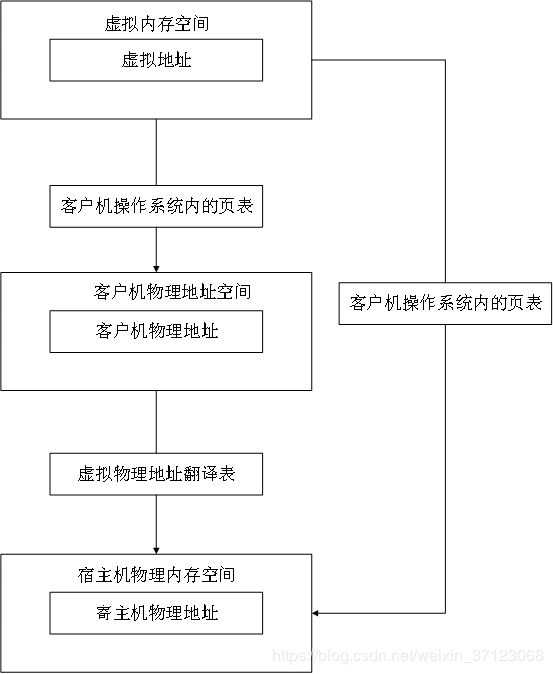 对于虚拟化环境来说,存在四种地址,GVA(Guest virtual address,客户机虚拟地址)、GPA(Guest physical address,客户机物理地址)、HVA(Host virtual address,宿主机虚拟地址)、HPA(Host physical address,宿主机物理地址)。对于客户机应用程序来说,它想访问一个具体的物理地址需要两级页表转换,即GVA到GPA和GPA到HPA。