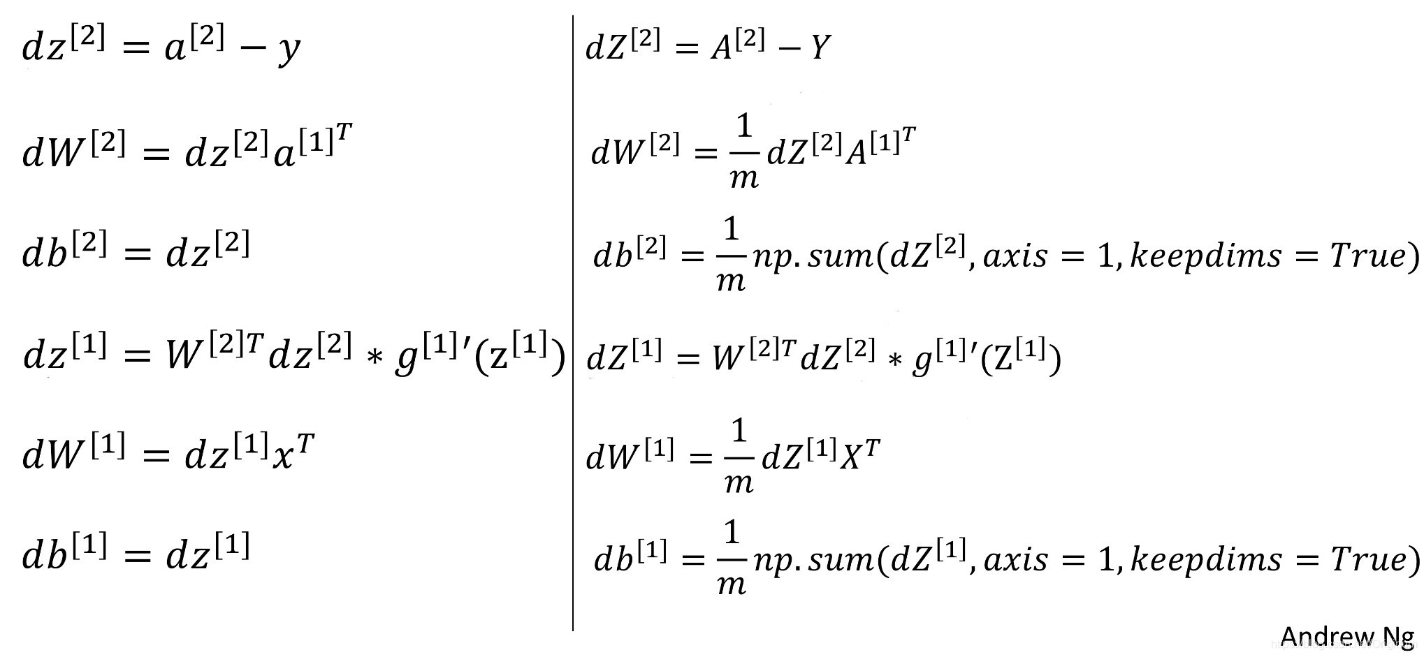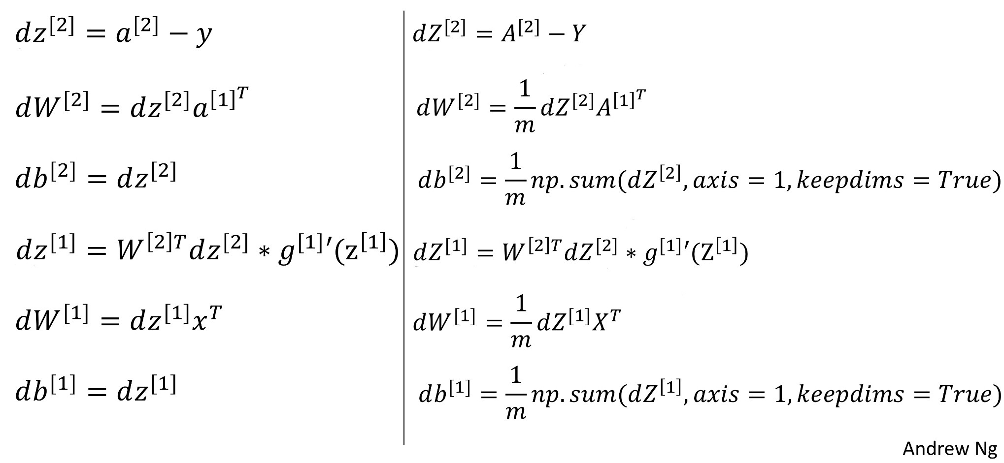 刚刚列举的是前向传播,现在这幅图表示的是反向传播的向量化对比: