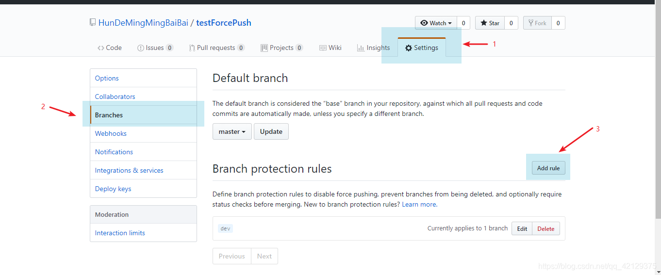 下面还有四个选项,好像是四个级别,不太懂就没设置,而且增加了这个rule之后我还是可以强制推送,如果有牛人看到这个帖子,可以帮忙回答下这个问题