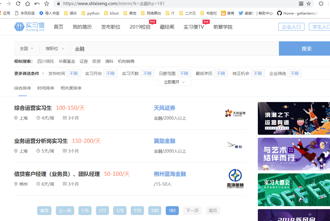 最近想爬一下各大招聘网站来分析一下,首先我们从实习僧开始。