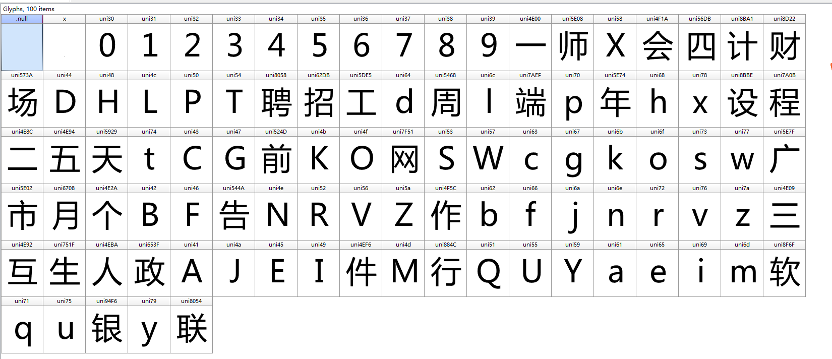 看着别人的博客,发现别人用fontcreator打开的字体文件和我打开的文件不仅字是一样的,而且数量和顺序都是一样的(博客时间是2018年了),也就是说实习僧至少有一年没有更新网页代码了。虽然这个字体文件变化很频繁,但有没有可能所有的字体文件都有一个特定的顺序排序这些文字。这个猜想是很合理的,每个程序员都会有一个归一化的思想,比如代码结构,代码排版等。
