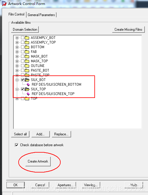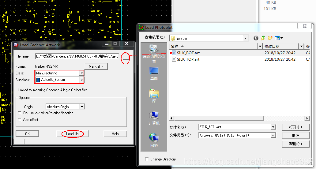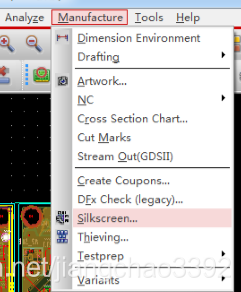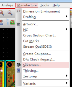 设置光绘,添加丝印层:Manufacture ->Artwork