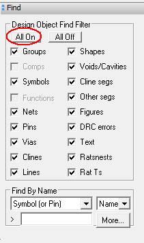 1、选择任意一需要拼板的PCB,打开所有层,并在find中打开所有选项