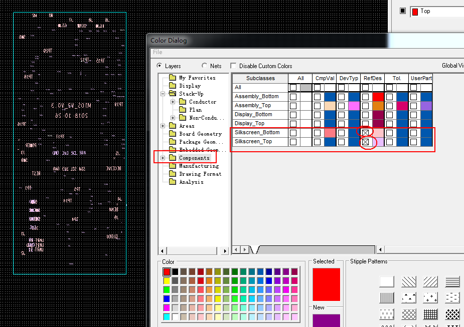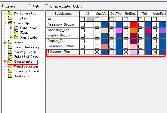 先关闭所有颜色, 然后在只打开所有的丝印层, top层和Bottom层,一项项来: