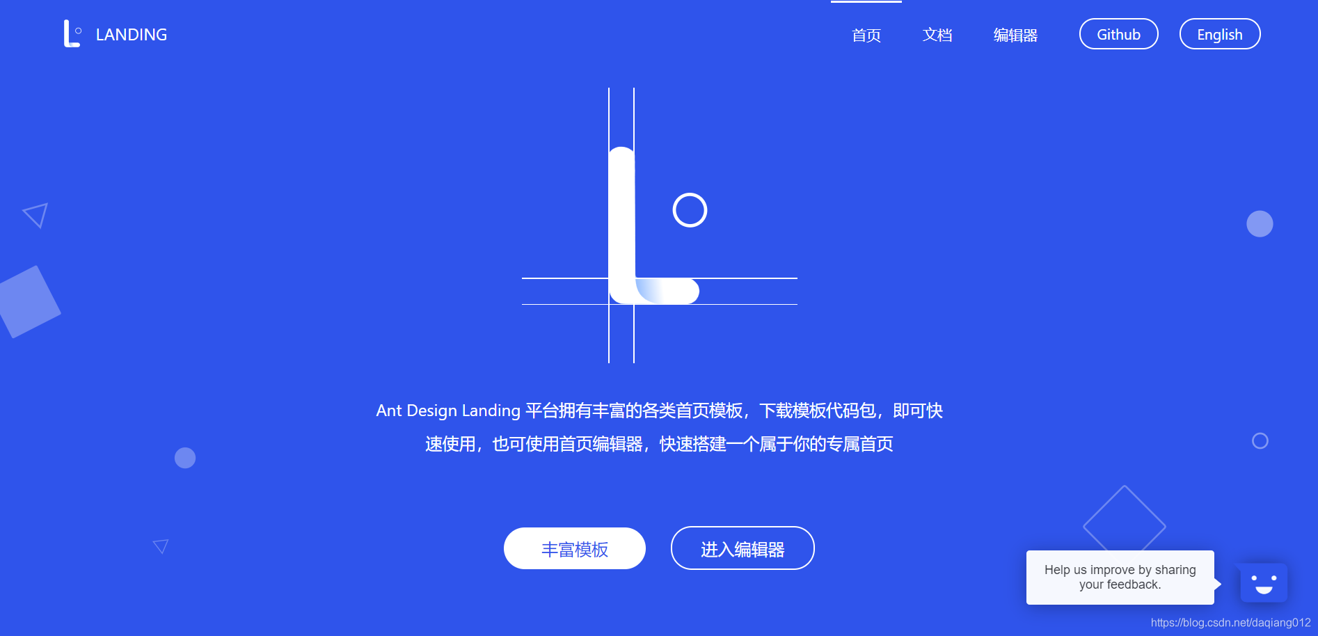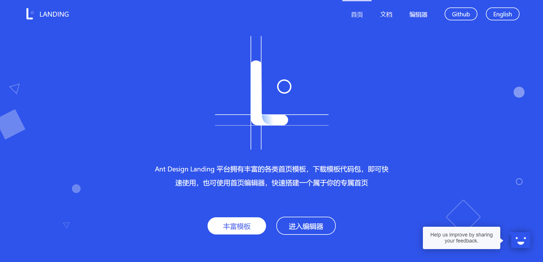 Ant Design Landing 平台拥有丰富的各类首页模板,下载模板代码包,即可快速使用,也可使用首页编辑器,快速搭建一个属于你的专属首页