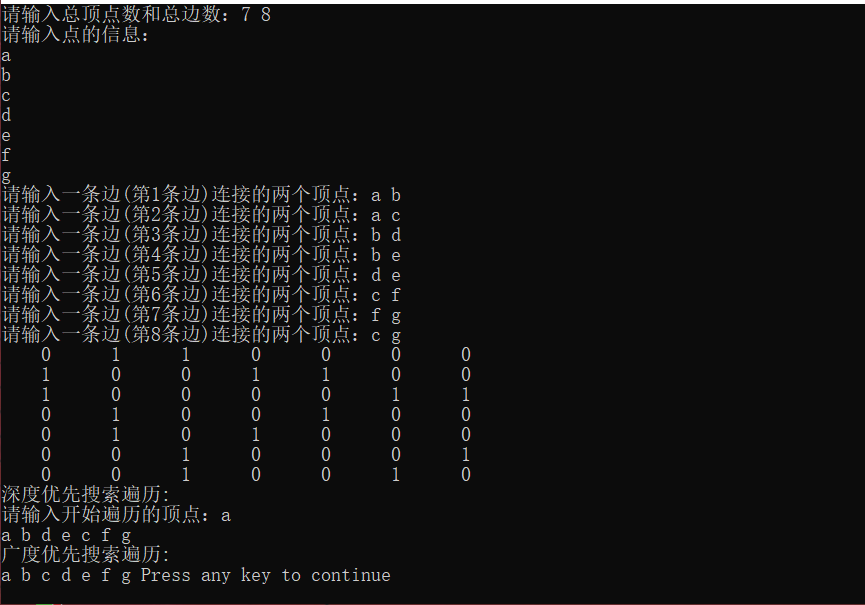 printf(“请输入一条边(第%d条边)连接的两个顶点:”,k+1);