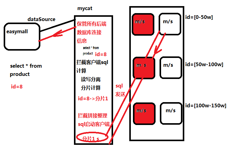 如图所示,之前做了个Easymall项目,上篇博客写了一个双机热备,读写分离,那么如何让项目实现,写的时候连接主节点,读取的时候,使用从节点呢?通过代码其实也可以实现,但是要写的代码量过于庞大,那么为什么不使用,工具呢?能做车,为什么步行呢,数据库集群交给Mycat来管理