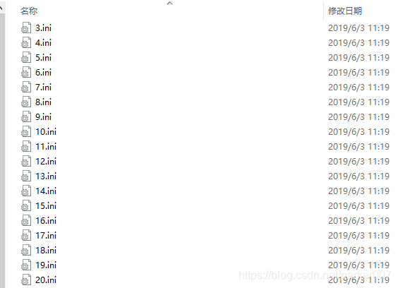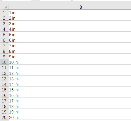 REM @echo off @echo off set name=FileList.txt set exc=.ini for /l %%i in (01,1,99) do ( echo %%i%exc% >>%name% ) 1.ini 2.ini 3.ini 4.ini 5.ini 6.ini 7.ini 8.ini 9.ini 10.ini 11.ini 12.ini 13.ini 14.ini 15.ini 16.ini 17.ini 18.ini 19.ini 20.ini 3、创建批处理命令,会根据 FileList.txttest001.ini 文件复制20次(根据需要的多少在FileList.txtFileList.txt 中命名生成