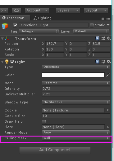 版权声明:kuiLaurence https://blog.csdn.net/kuilaurence/article/details/91040669 给需要照射的物体填加layer区分,然后用culling mask选中,除了添加的layer,其他的都照射不到了。 文章来源: https://blog.csdn.net/kuilaurence/article/details/91040669 标签 隧道