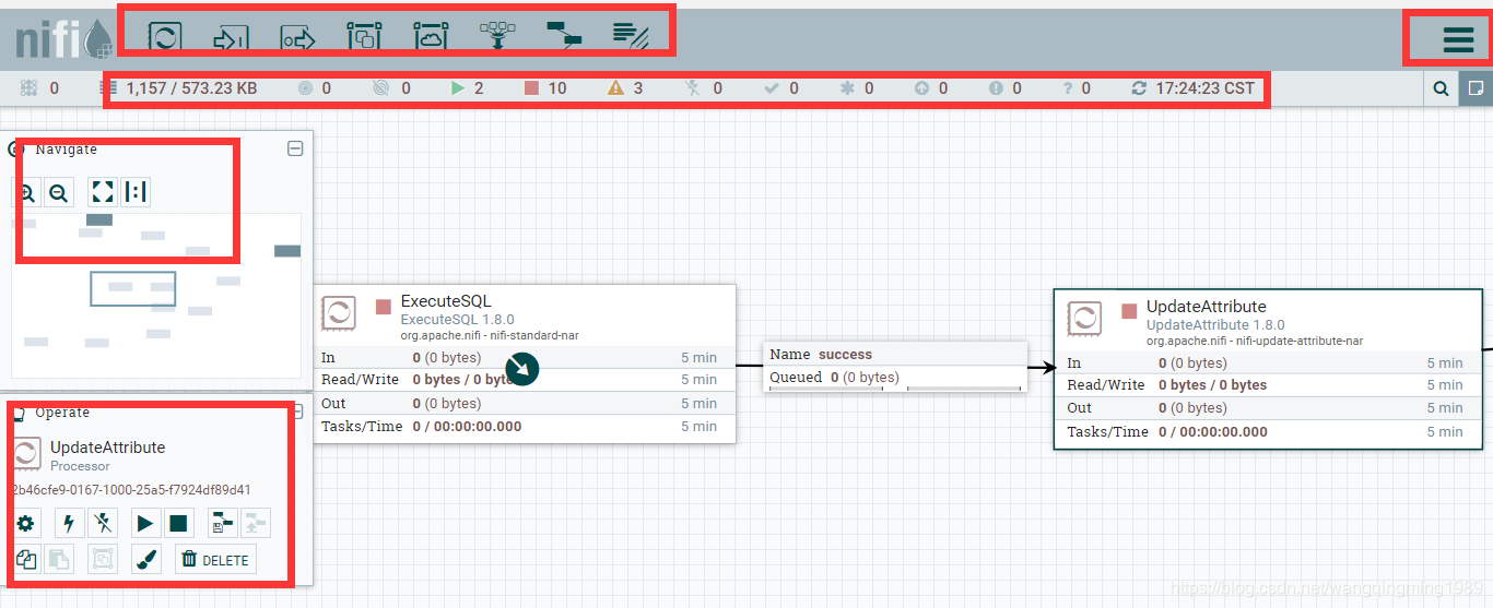 NiFi启动之后 ,我们可以通过UI来创建并监测我们的dataflow.通过浏览:http://IP:Poit/nifi,来访问NiFi的界面。如果你使用默认配置安装在本地的话,默认端口访问,即:http://localhost:8080/nifi.即可访问NiFi界面。