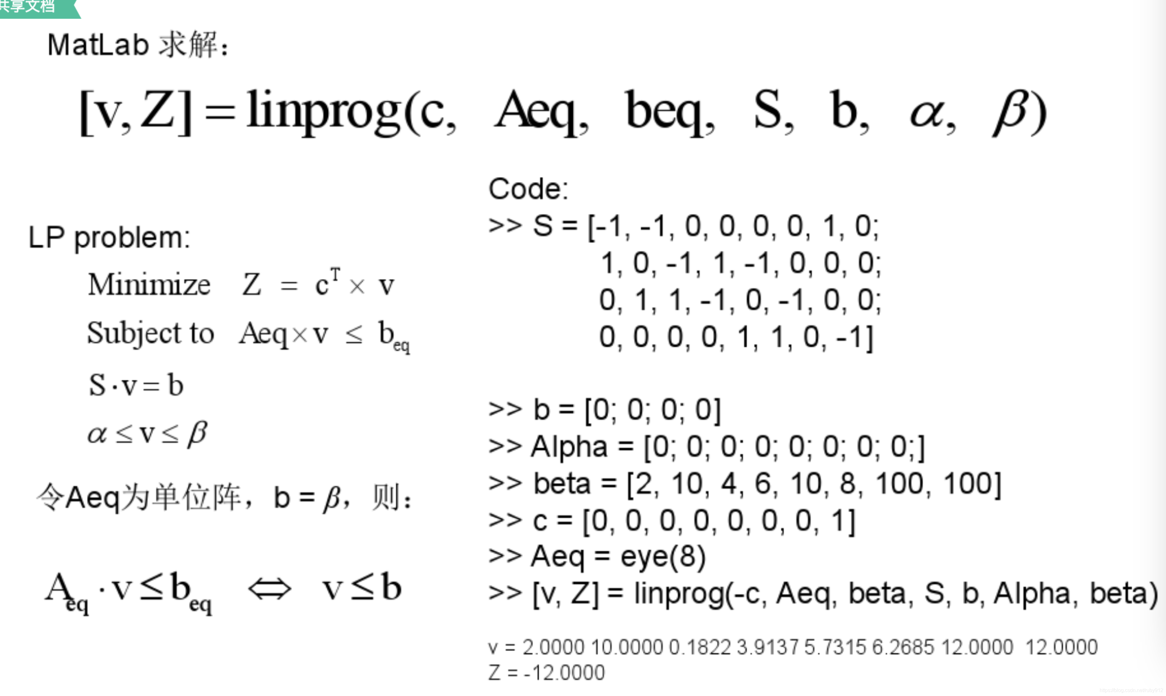 Matlab线性规划实例