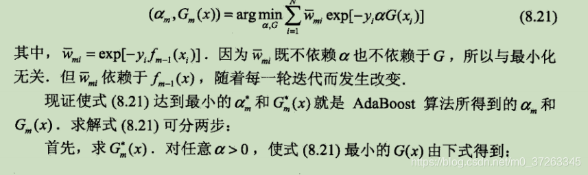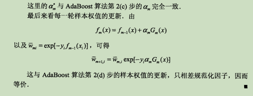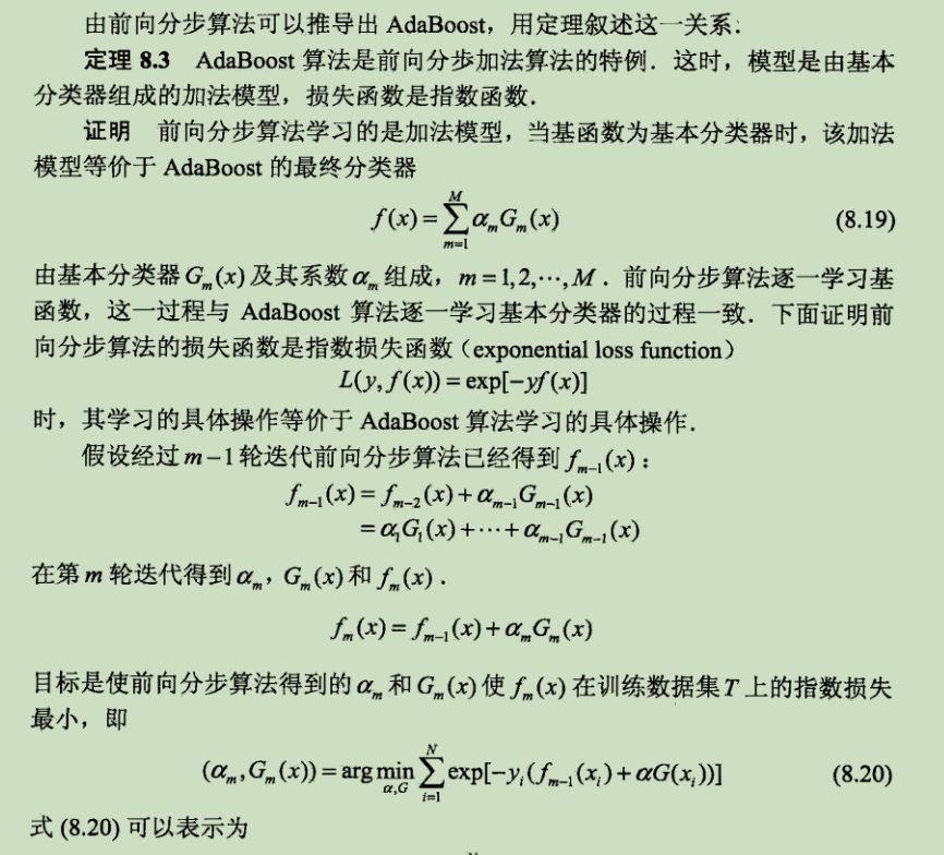 由算法的推导过程可以证明,该算法的学习步骤正是一个损失函数是指数损失函数的前向分步算法的优化问题
