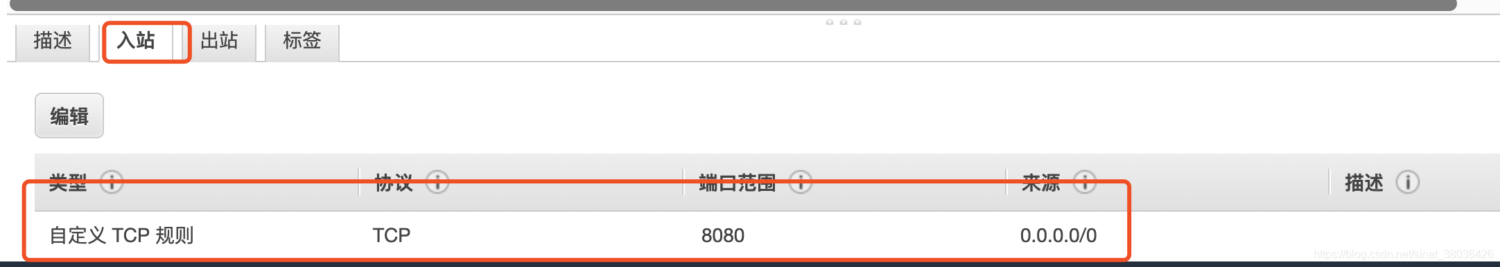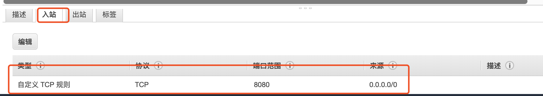 在ec2里边配置安全组,增加一条规则