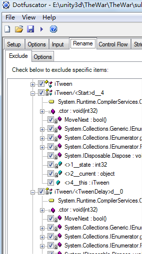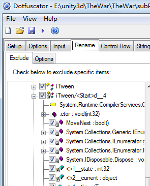 2使用iTwenn时发现iTwenn不能被混淆,不然会执行不正确,所以需要在Rename里将iTwenn排除掉,注意所有的子项也要手动勾选,勾选父后,子项并不会自动勾选