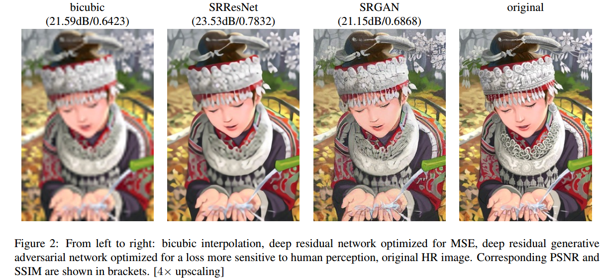 在这篇文章中,将生成对抗网络(Generative Adversarial Network, GAN)用在了解决超分辨率问题上。文章提到,训练网络时用均方差作为损失函数,虽然能够获得很高的峰值信噪比(psnr),但是恢复出来的图像通常会丢失高频细节(因为它针对一个一个像素优化,而如高层纹理细节的能力非常有限),导致图像向更加平滑的方向发展(产生边缘伪影),使人不能有好的视觉感受。