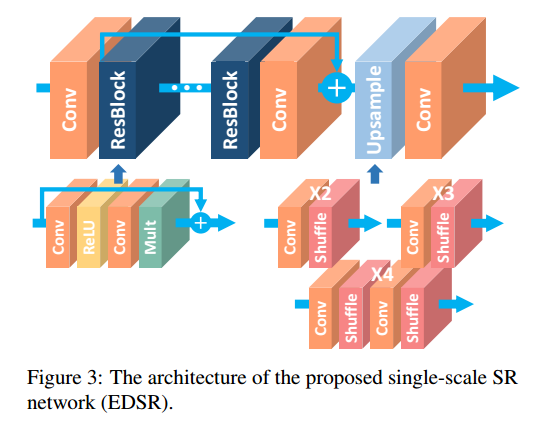 11、EDSR(2017年冠军模型,改进SRResNet)