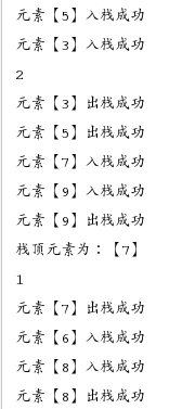 class Stack(object): def __init__(self): self.stack = [] def __len__(self): return len(self.stack) def push(self, item): self.stack.append(item) print('元素【%s】入栈成功' %(item)) def pop(self): if not self.is_empty(): item = self.stack.pop() print('元素【%s】出栈成功' %(item)) # else: # raise Exception('栈为空') def top(self): if not self.is_empty(): item = self.stack[-1] print('栈顶元素为:【%s】' %(item)) # else: # raise Exception('栈为空') def length(self): return len(self.stack) def is_empty(self): return len(self.stack) == 0 stack = Stack() stack.push(5) stack.push(3) print(len(stack)) stack.pop() stack.is_empty() stack.pop() stack.is_empty() stack.pop() stack.push(7) stack.push(9) stack.pop() stack.top() print(len(stack)) stack.pop() stack.push(6) stack.push(8) stack.pop()