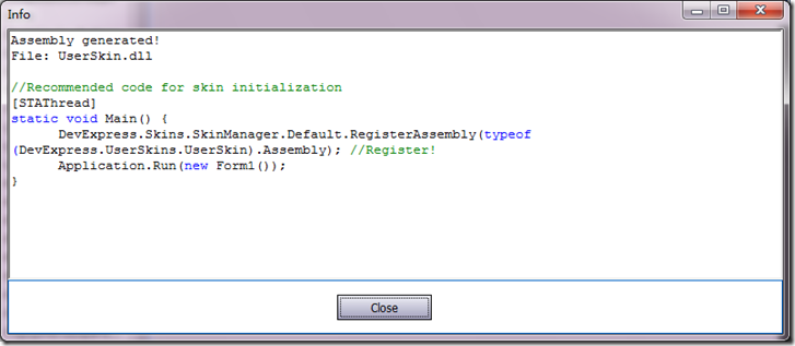 defaultLookAndFeel.LookAndFeel.SkinName = "MySkin_Black";MySkin_Black这个就是上面所讲皮肤名字,在这里用。