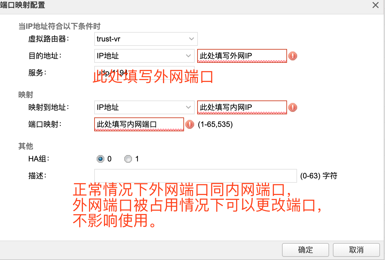 业务需要增加一条有外网至内网的端口映射(目的NAT)
