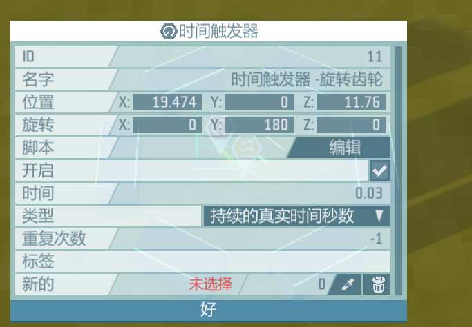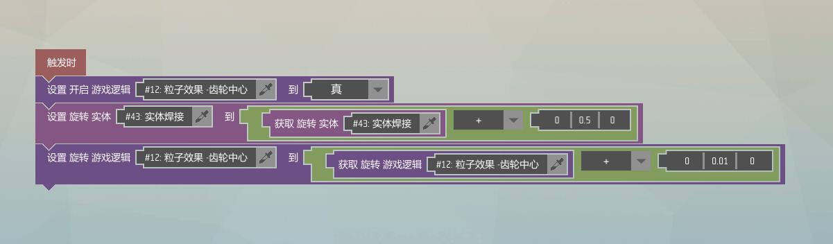 艾兰岛编辑器-设置旋转效果 需要砖块*6,焊接能一整体 一个时间触发器,一个粒子效果 粒子效果设置如下: 时间触发器设置如下: 进入效果: 6块砖在旋转 文章来源: https://blog.csdn.net/qq_42959409/article/details/92393243 标签 触发器 数码 编辑器