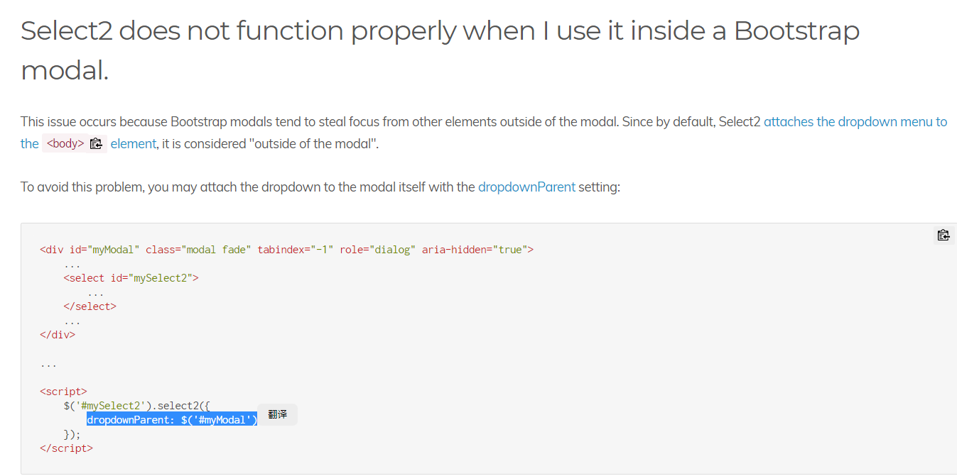 $.fn.modal.Constructor.prototype.enforceFocus = function() {}; 后来在加班select2官网文档的时候,发现在4.0以后的版本,官方已经意识到了这个问题 并迅速的给出了解决办法