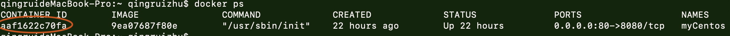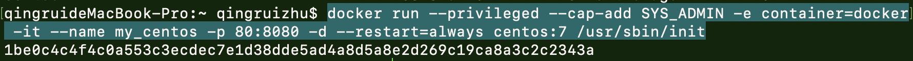 这个命令用来建立一个CENTOS的容器。把80端口映射到容器的8080端口。