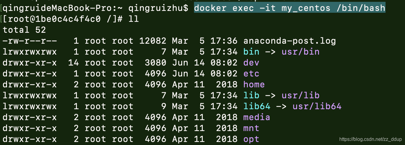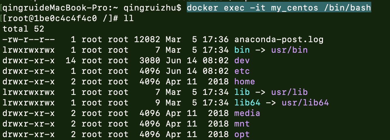 进入正在运行的centos容器,进去后就和操作linux一样了
