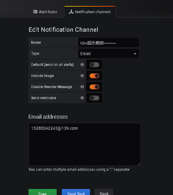 老实说grafana告警不是很好用,也不能分级告警。建议用prometheus的告警