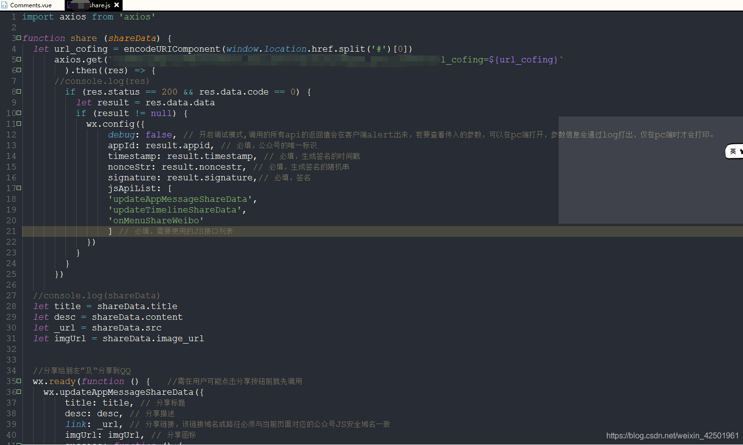 重点就在前后端的页面路径必须要一致,所以就要前端发给后端,坑也就在这里,下面附上我封装好的分享接口,大家自己看吧!