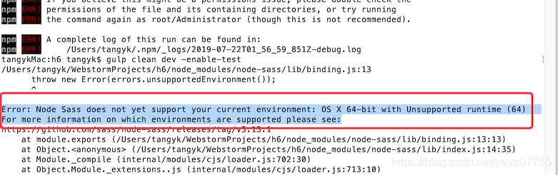 Error: Node Sass does not yet support your current environment: OS X 64-bit with Unsupported runtime (64) For more information on which environments are supported please see: