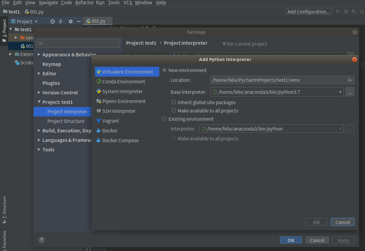PyCharm三种解释器的区别(virtual Enviroment, system interpreter, conda Enviroment)