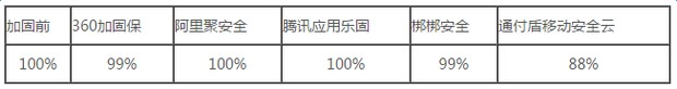| 未加固 | 阿里加固 | 腾讯加固 | 360加固 | 梆梆加固 | 爱加密 |