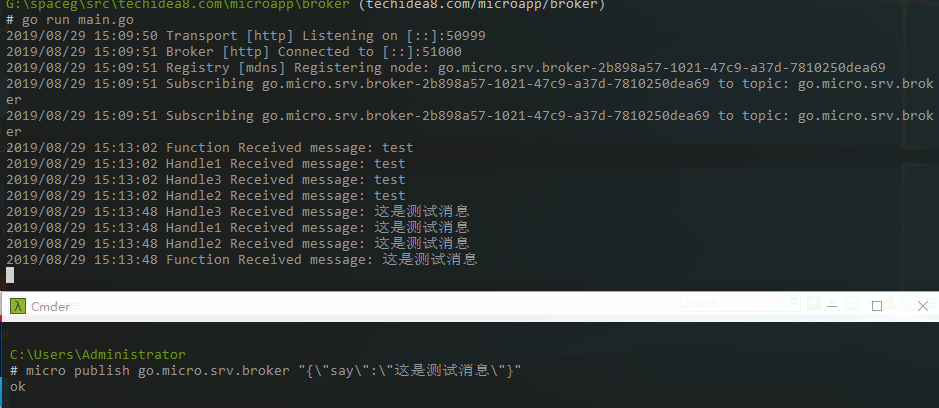 micro publish go.micro.srv.broker "{\"say\":\"这是测试消息\"}" 获得代码