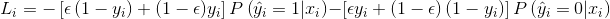 经过随机化之后,新的标签有1-ε的概率与yi相同,有ε的概率不同(即1-yi)。所以,采用随机化的标签作为训练数据时,损失函数有1-ε的概率与上面的式子相同,有ε的概率为: