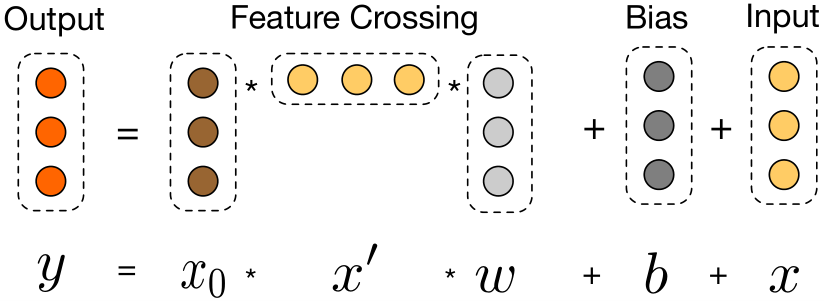 Cross Network特殊的网络结构使得cross feature的阶数随着layer depth的增加而增加。相对于输入x0来说,一个l层的cross network的cross feature的阶数为l+1。