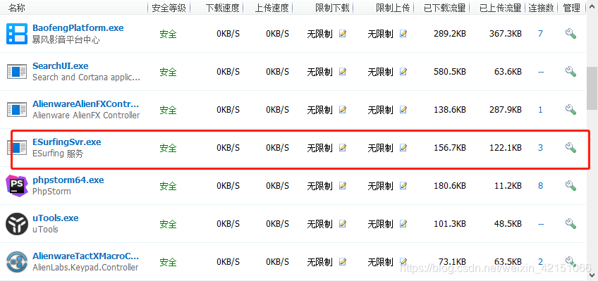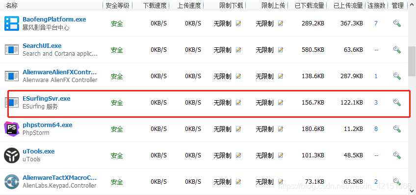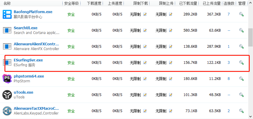 第二步:打开进程找到一个叫ESurfingSvr.exe的进程禁止其访问网络(这边演示如何用360找到进程)