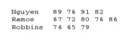 如对于学生的5门课程的成绩数据,由于有的学生没有选课所以没有成绩: